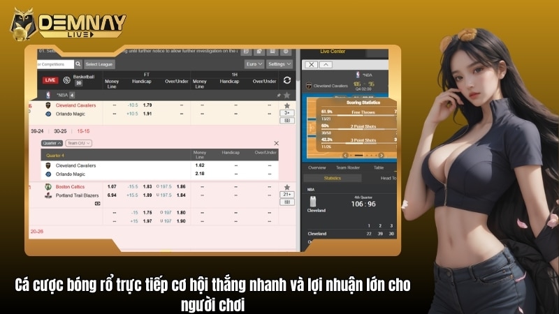 Bóng rổ là môn thể thao có nhịp độ cực nhanh, mỗi cú ném hoặc pha phòng thủ đều có thể thay đổi cục diện. Cá cược trực tiếp tận dụng tối đa đặc điểm này, mang lại cho người chơi tại Demnaylive cảm giác hồi hộp và cơ hội thắng liên tiếp.