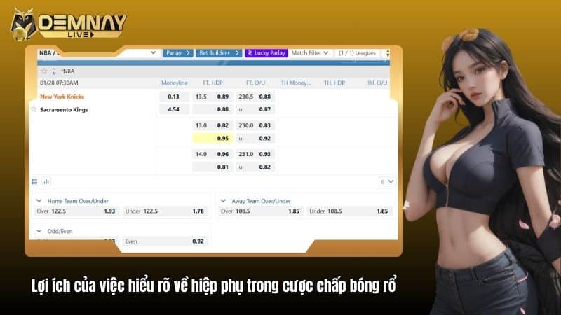 Trong cá cược bóng rổ, hiệp phụ có thể ảnh hưởng đáng kể đến kết quả cược chấp. Các điểm số ghi được trong hiệp phụ sẽ thay đổi tổng điểm và cách biệt giữa hai đội, từ đó ảnh hưởng trực tiếp đến việc người chơi thắng hay thua cược. Tuy nhiên theo Demnaylive nhận thấy, việc hiệp phụ có được tính vào cược chấp hay không phụ thuộc vào quy định cụ thể của từng nhà cái hoặc từng loại kèo.