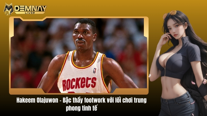 Hakeem Olajuwon nổi tiếng với kỹ năng footwork tinh tế, một điểm khác biệt khiến ông trở thành trung phong đặc biệt. Footwork của Hakeem Olajuwon không chỉ giúp ghi điểm mà còn giúp phòng ngự hiệu quả, che chắn cho đồng đội và kiểm soát nhịp độ trận đấu.